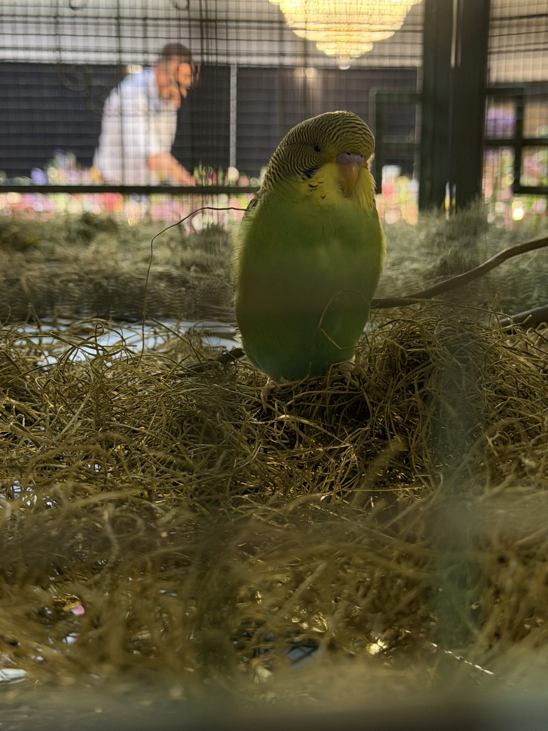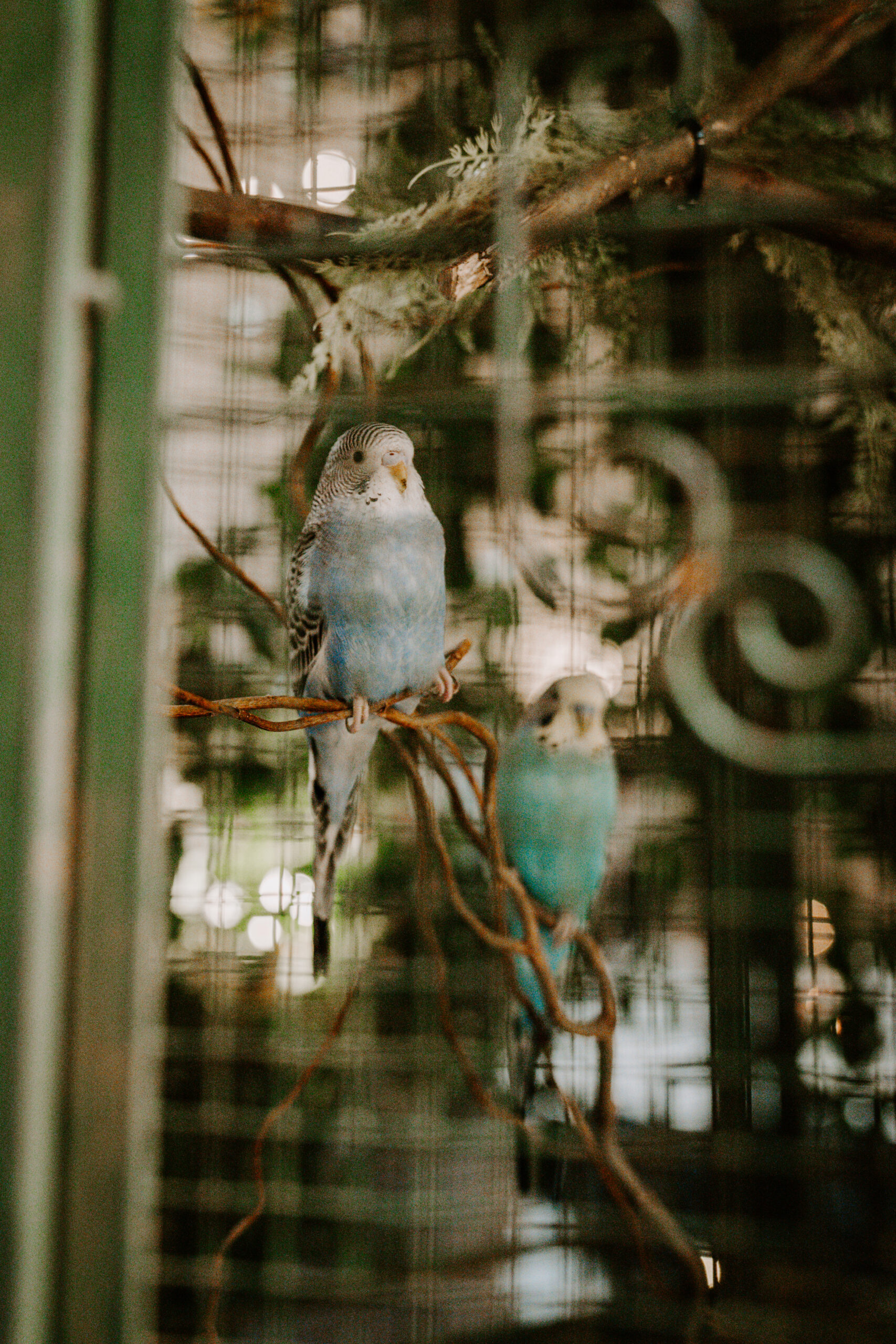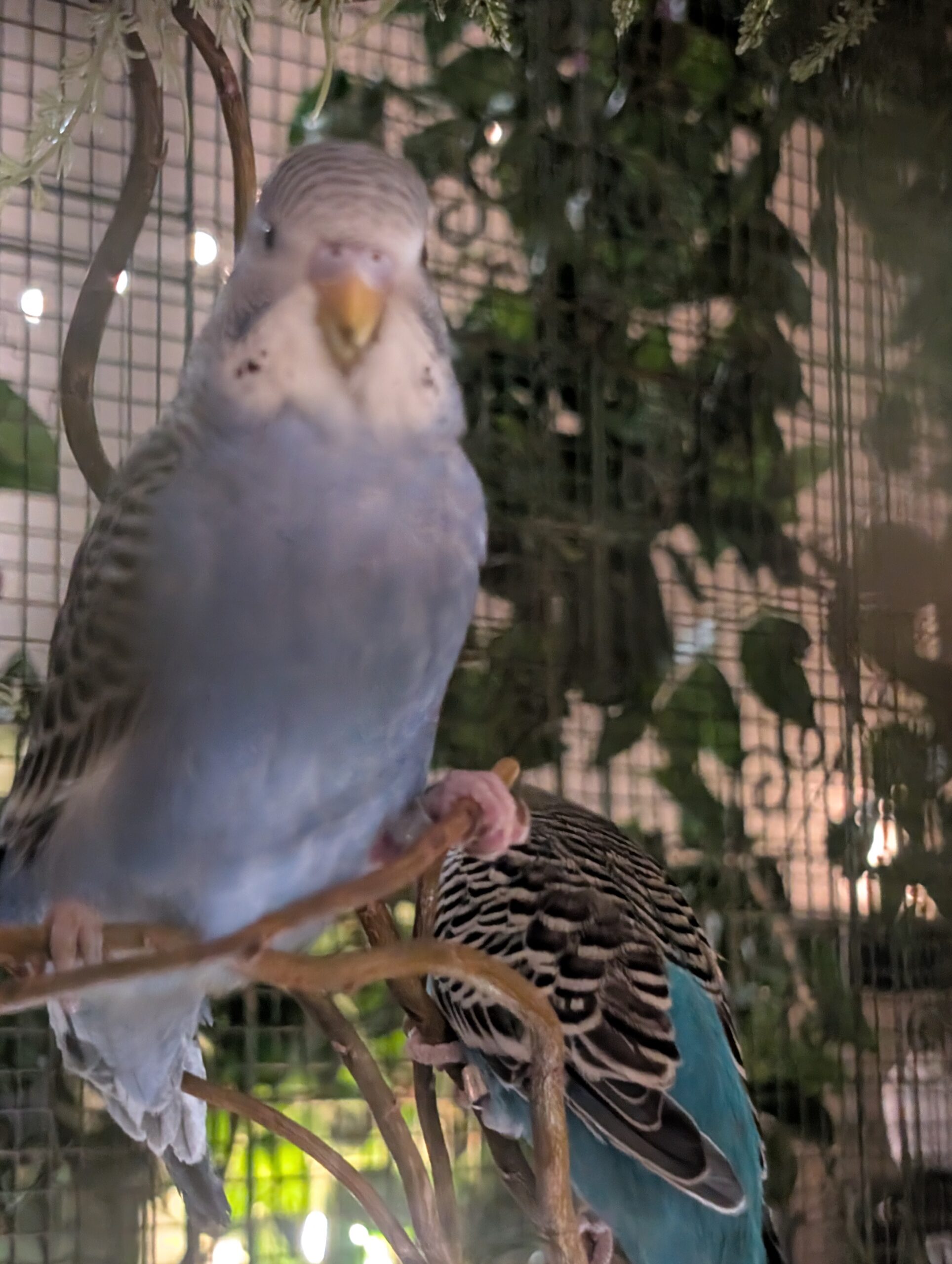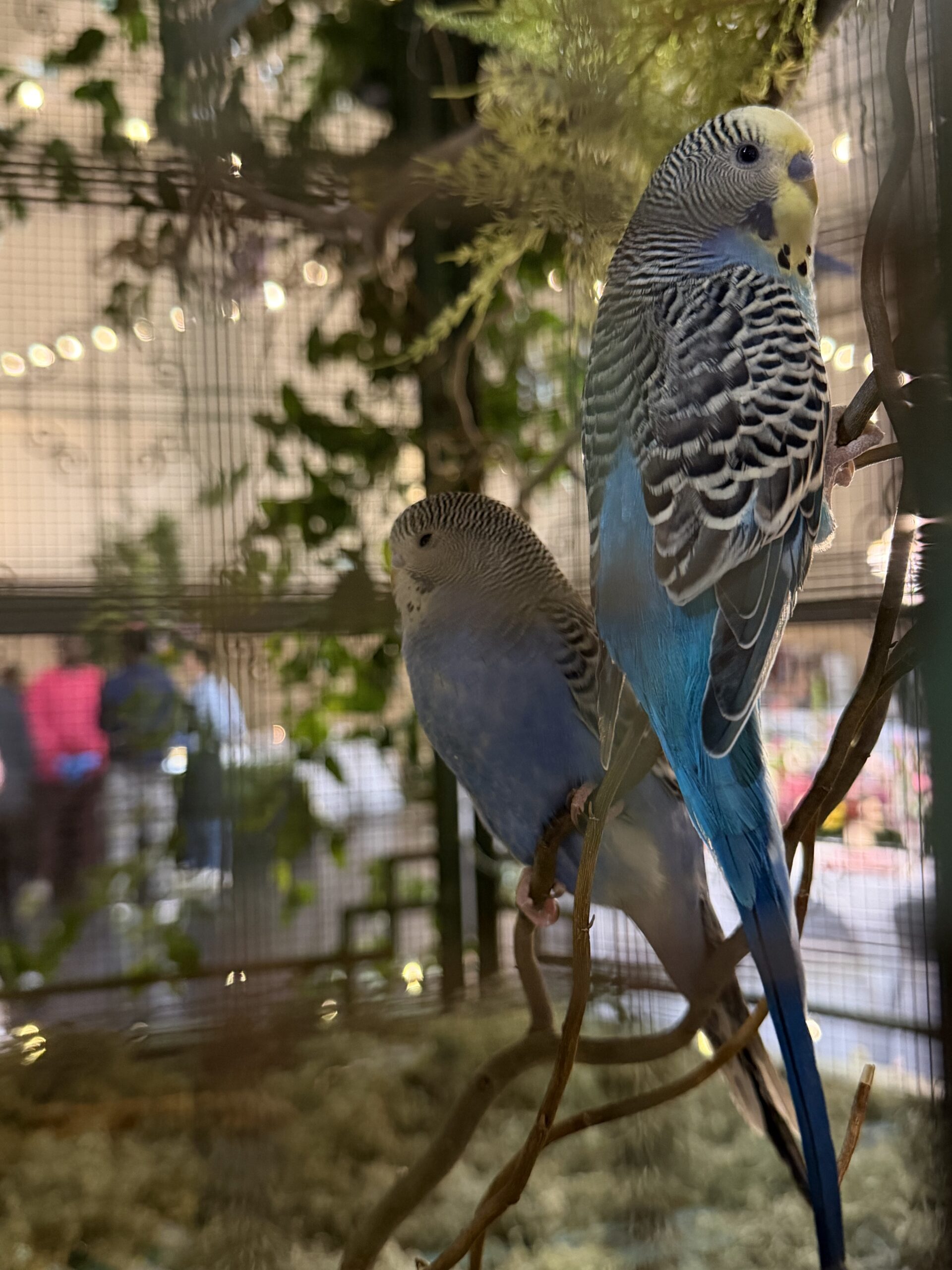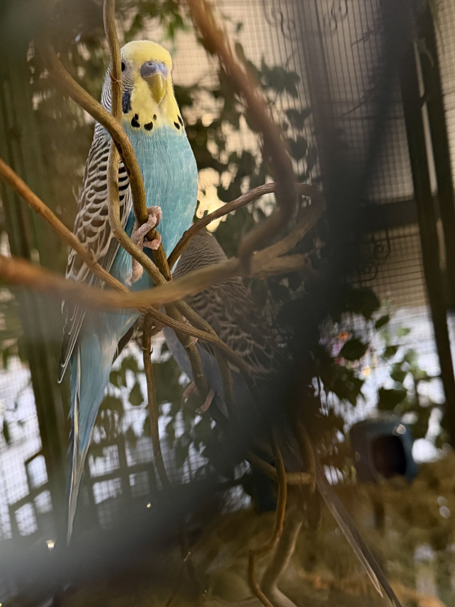The birds are so beautiful in the cage.